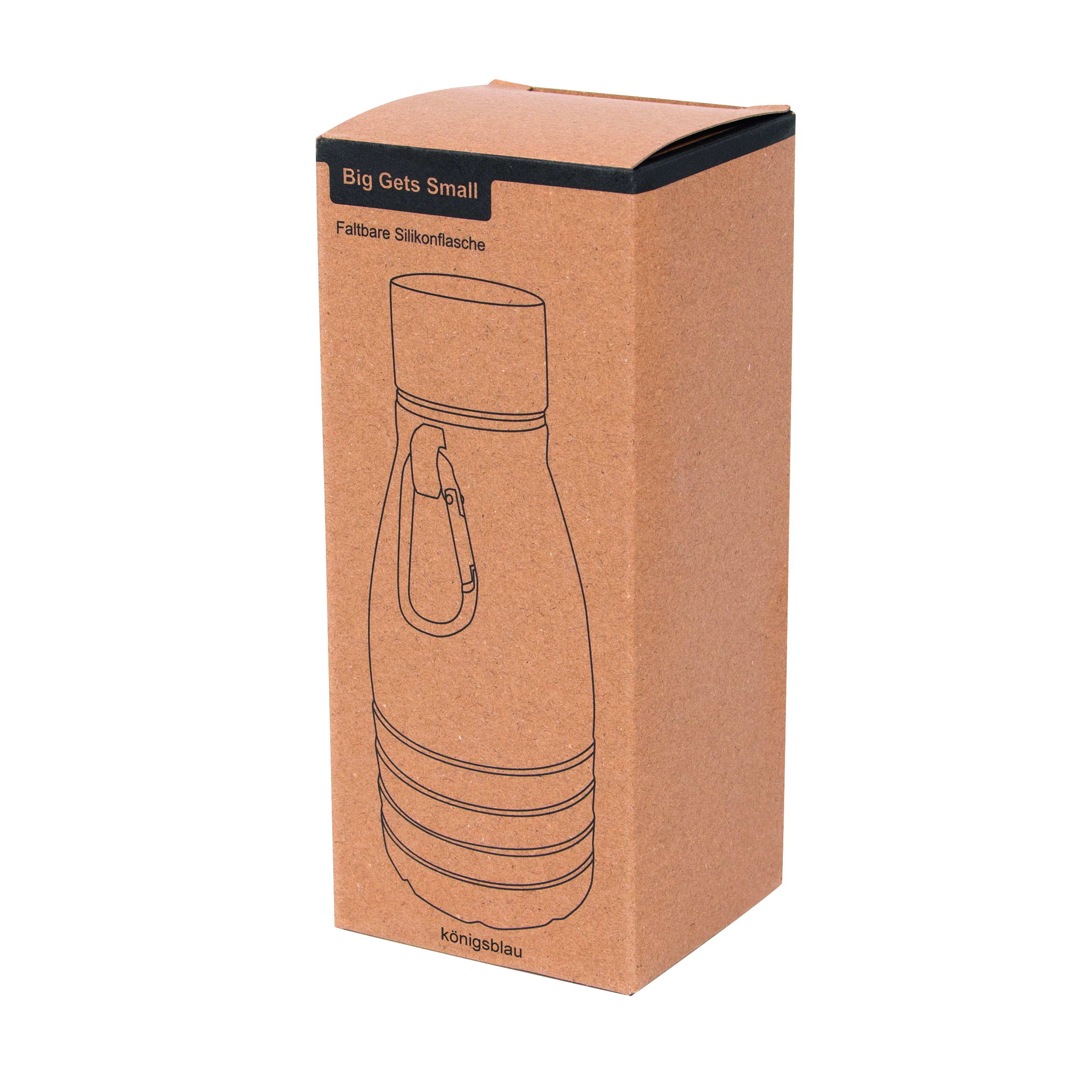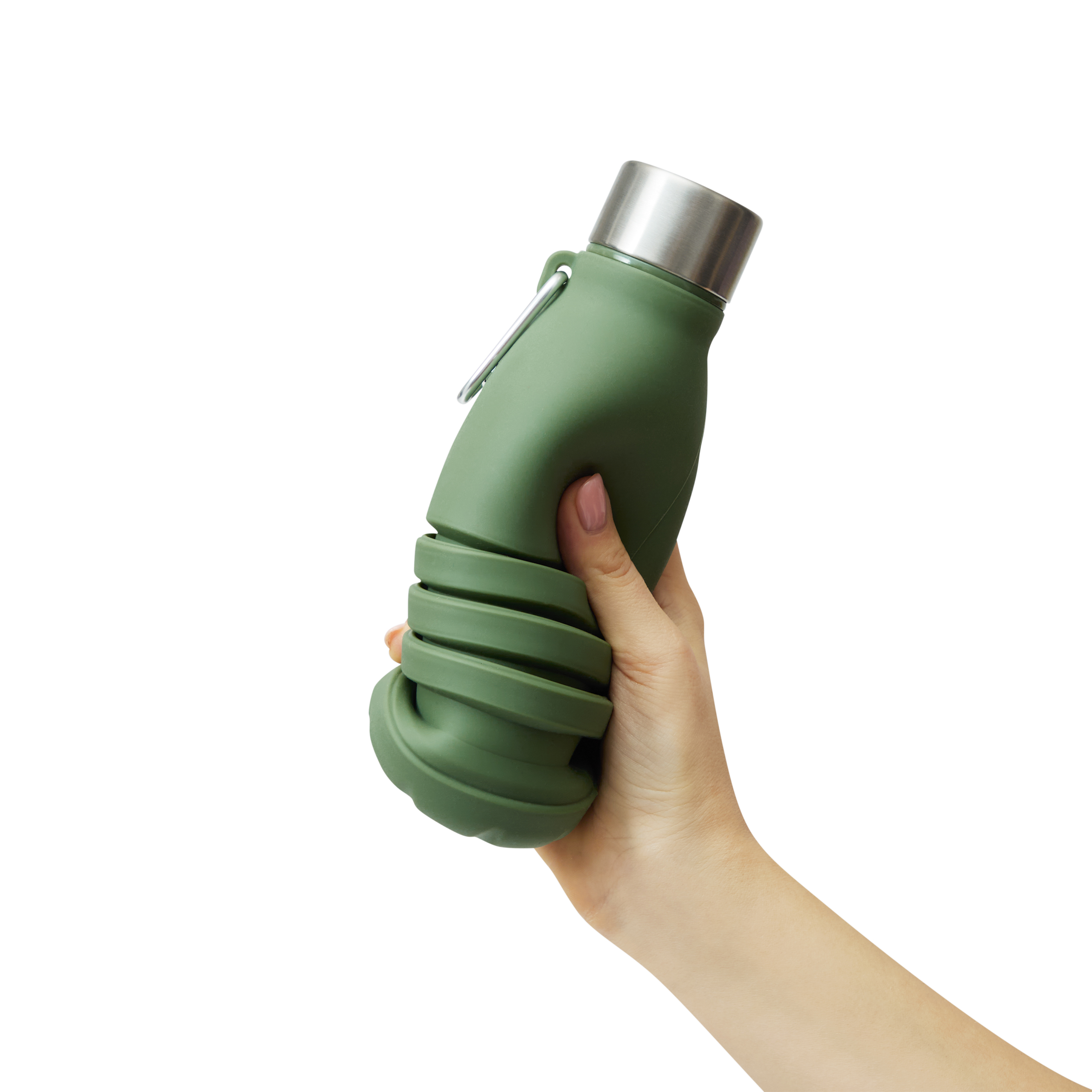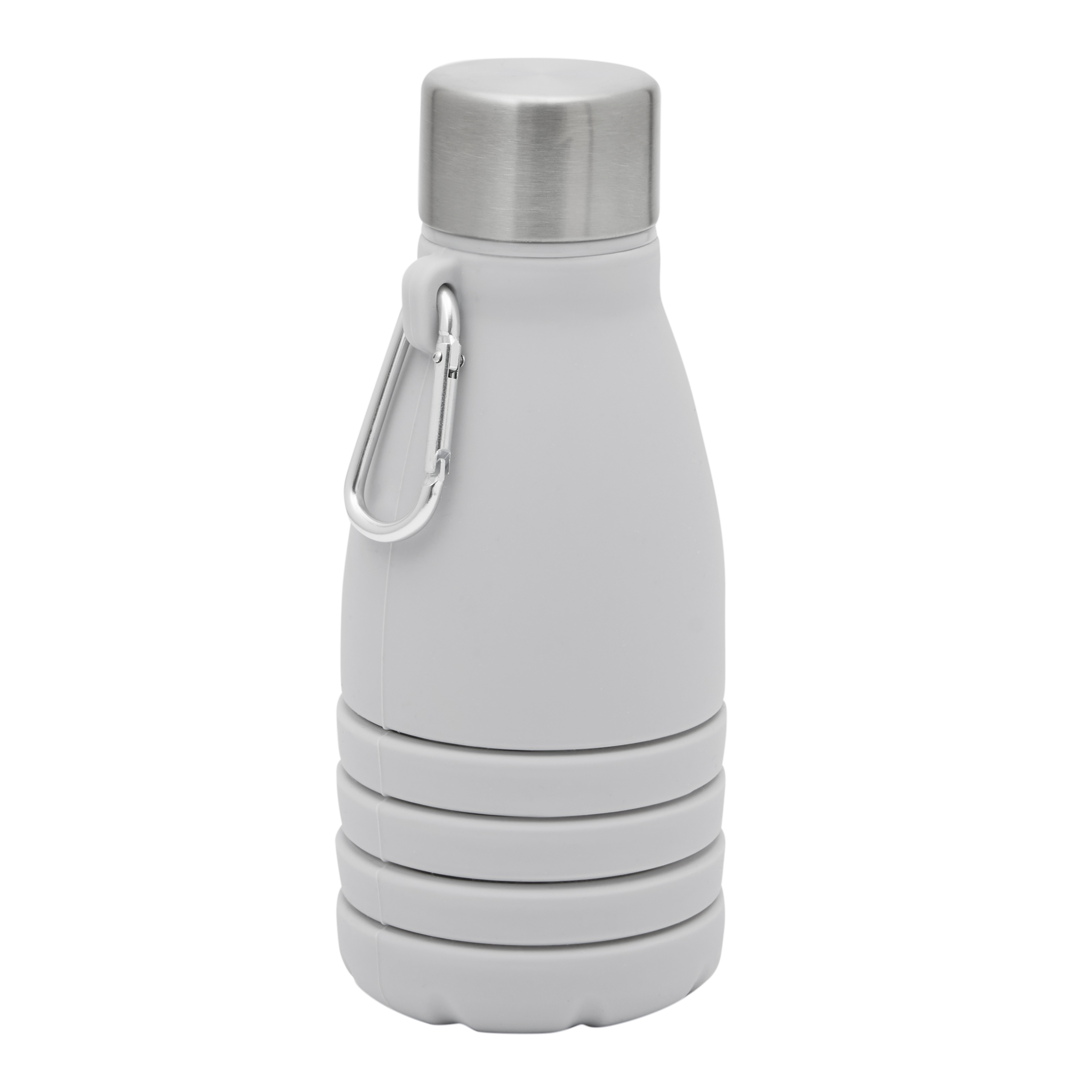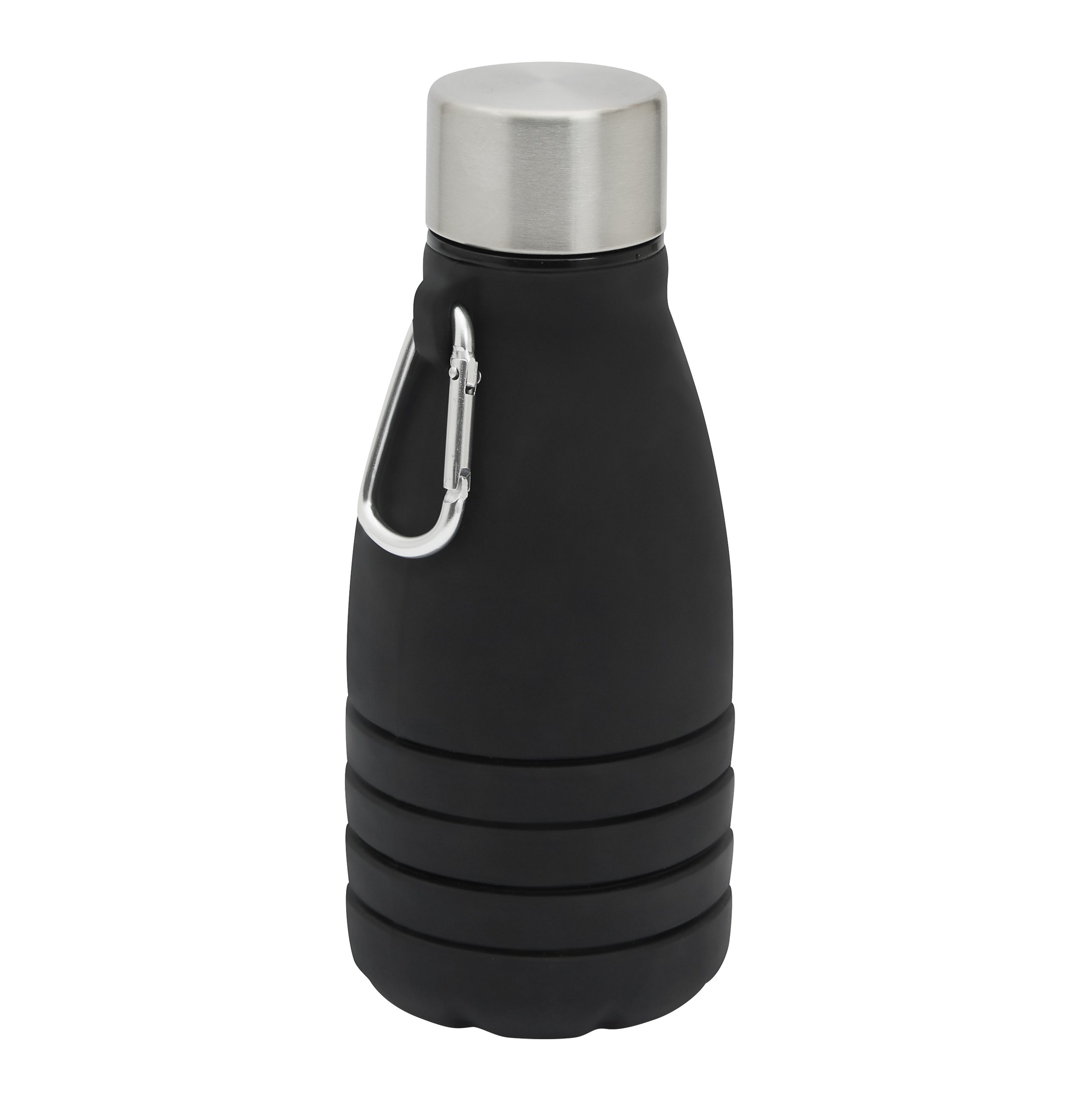 Kokkupandav joogipudel BIG GETS SMALL: keeratava roostevabast terasest korgi ja silikoonist tihendusrõngaga, alumiiniumkarabiiniga (karabiin EI SOBI ronimiseks), pudelit saab pikendada ja voltida ca. 8 cm, mahutavus u. 550 ml