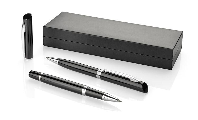 Set contains: ball pen, roller pen, case