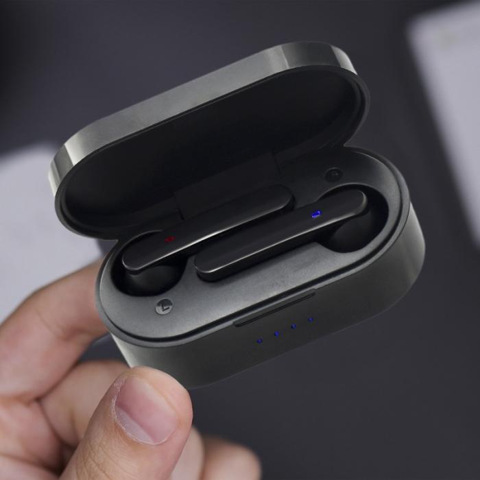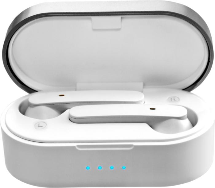 Juhtmeta kõrvaklapid Bluetooth® 5.0-ga. kvaliteetse ühenduse loomiseks seotud seadmega. Sisseehitatud mikrofon koos käedvabad funktsiooniga telefonikõnede vastuvõtmiseks. Kõrvaklappide abil juhitavad lisafunktsioonid: Toide sisse/välja, häälassistent, muusika juhtimine, helitugevuse reguleerimine, telefonikõnede vastuvõtmine/keeldumine/lõpetamine. ABS plastik.