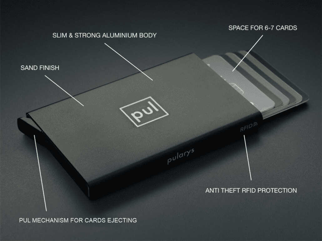 RFID kaitsega alumiiniumist krediitkaarditasku, mis mahutab 6-7 kaarti. Kaasa paberkarp või kena kinkekarp.