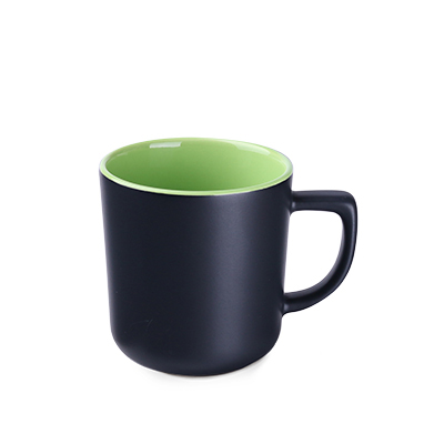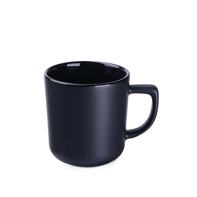 Moodne laia trükipinnaga kruusi. Matt must kruus on saadaval 7 eri värvi sisuga.