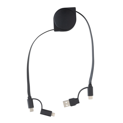 6-ühes sissetõmmatav kaabel, mille korpus on valmistatud RCS-sertifikaadiga taaskasutatud ABS-plastist ja traat taaskasutatud TPE-st. Taaskasutatud kogusisaldus: 59% eseme kogukaalust. RCS (Recycled Claim Standard) on standard toote ringlussevõetud sisu kontrollimiseks kogu tarneahelas. Kaablil on 5 erinevat pistikut: USB C in, USB A in, Type C out, IOS out ja micro USB out. See võimaldab kasutada kaablit C-tüüpi väljundseadmetega, mis on kaasas uuema põlvkonna telefonidele ja Macbook-arvutitele. Kaablil on ka USB A väljundsisend, nii et sellega saab laadida mis tahes seadet mis tahes väljundallikast. Toode on täielikult PVC-vaba.