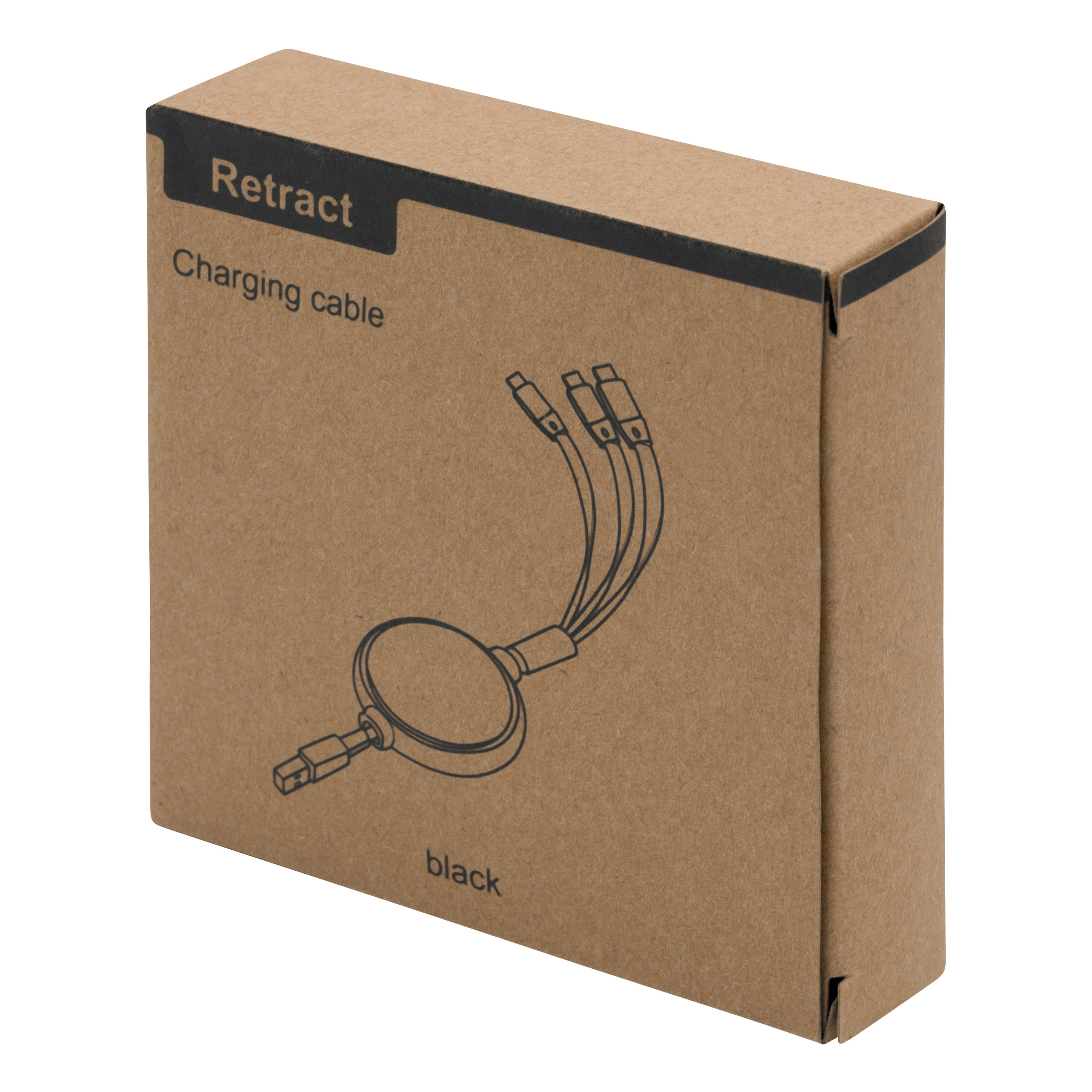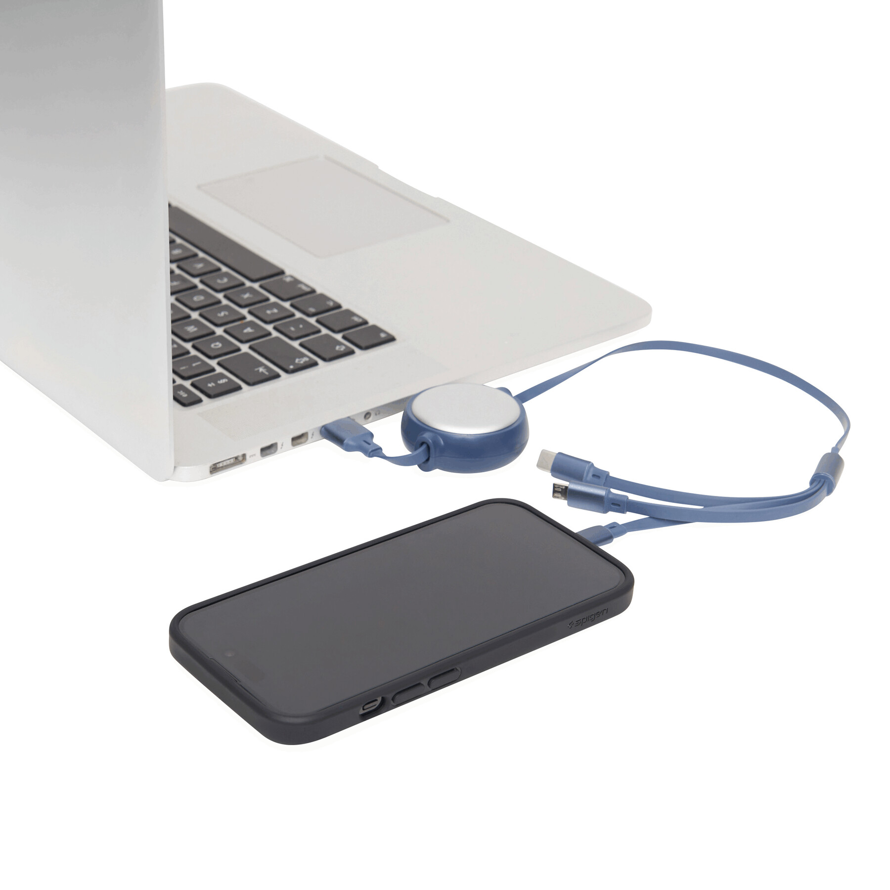 Sissetõmmatav laadimiskaabel (pikkus: umbes 100 cm): 3 pistikuga tavaliste elektroonikaseadmete ja nutitelefonide laadimiseks, USB Type-C, Micro-USB ja Lightning. Saadaval kolmes värvitoonis.