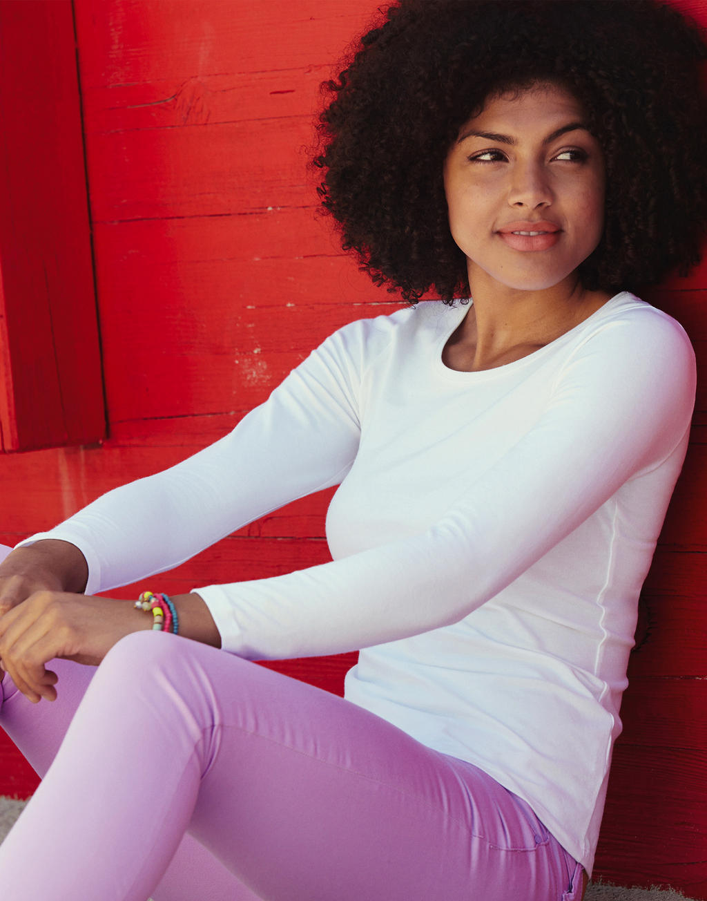 Pehme ning veniv puuvilla/elastaani materjal, mis on naiseliku lõikega.