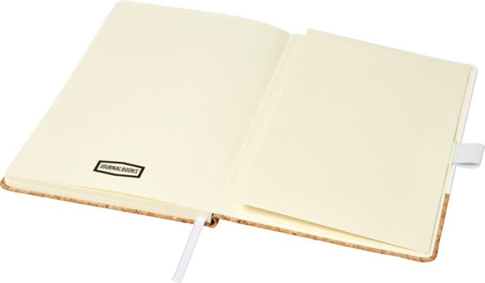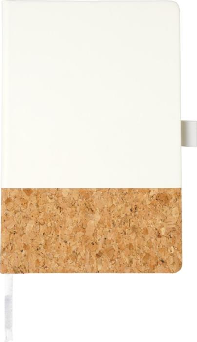 Stiilne A5-suuruses kõvakaaneline PU-alumise osaga märkmik. Sisaldab sobivat värvi elastset sulgurit, järjehoidjat, 80 kreemikat tooni joonelist 80 g/m² lehte ja tagaküljel laiendatav tasku väikeste märkmete hoidmiseks. Pakitud musta karpi. Kork, PU plastik. Värvivaikus must ja valge.