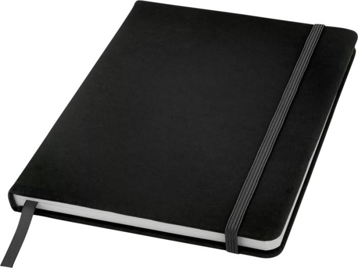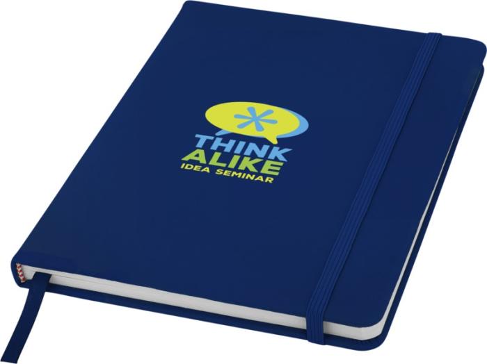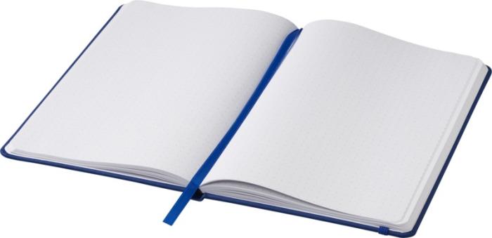 A5-formaadis märkmik sobivat värvi elastse riba ja järjehoidjaga. Sisaldab 96 lehte (60g/m2) punktiirpaberit. PU plastik. Värvivalikus sinine ja must.