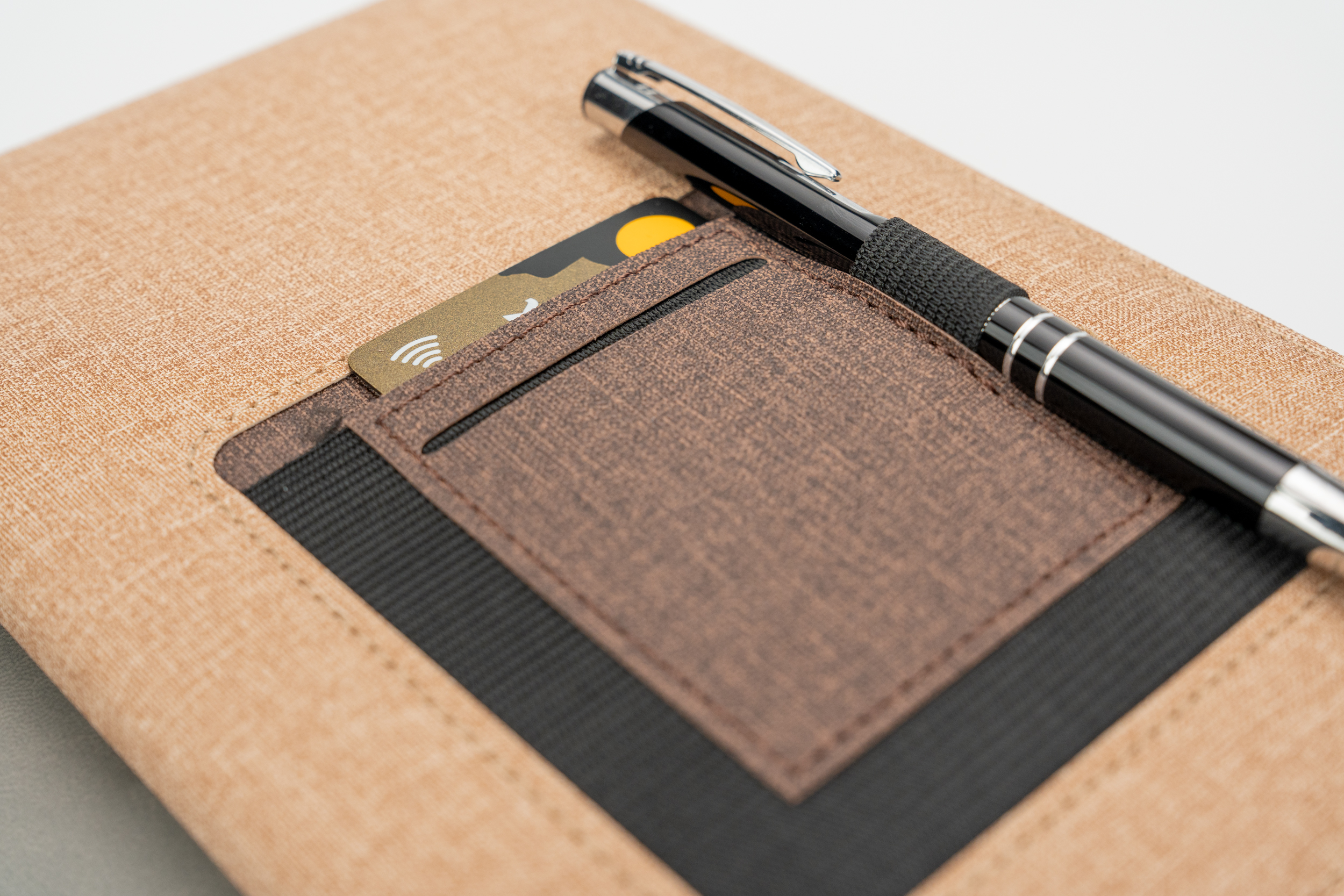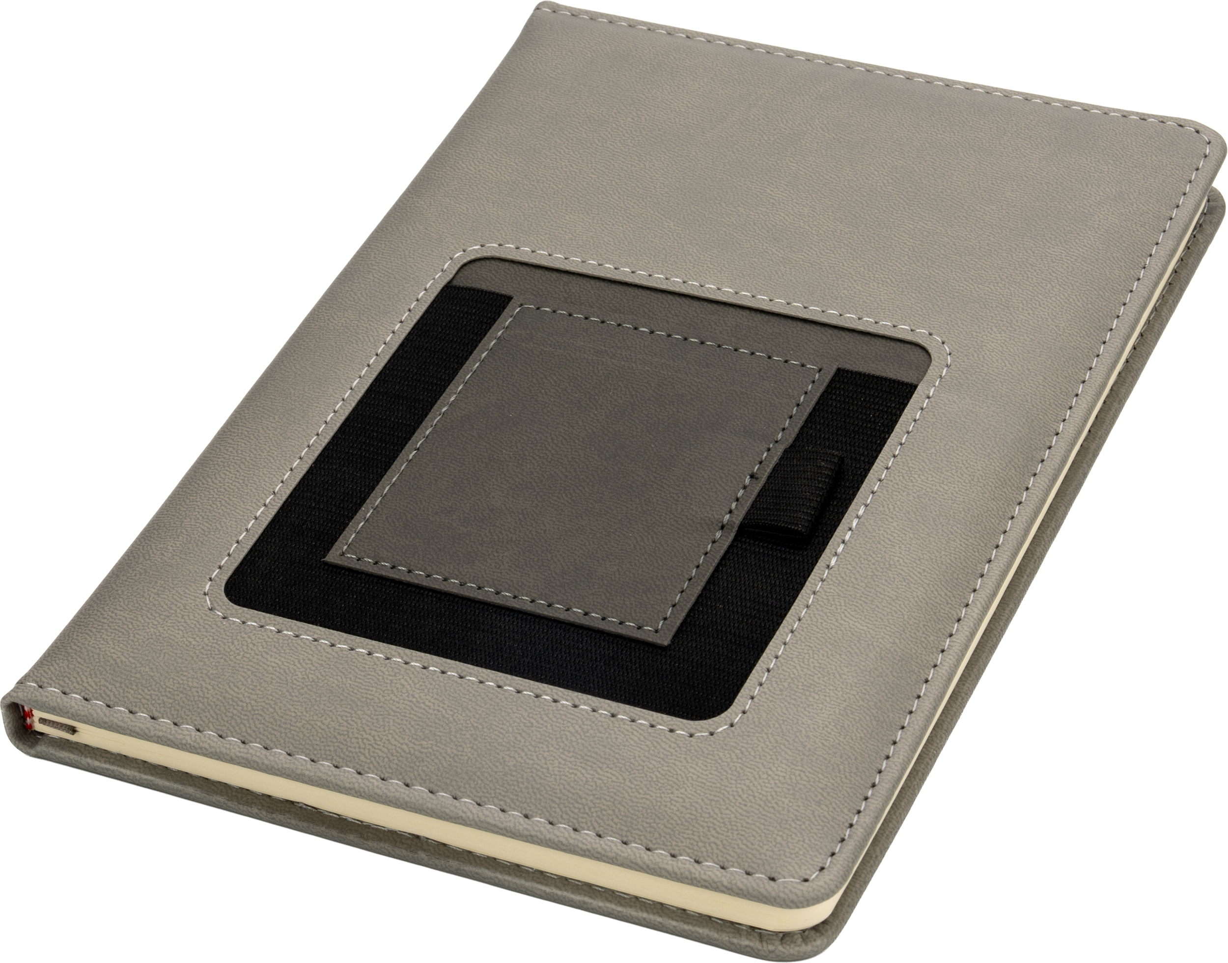 Elegantne DIN A5 märkmik 160 punktiirjoonega leheküljega, järjehoidjate ja pastapliiatsi aasaga, vahetükiga ja nutitelefoni sahtliga (laius u 9 cm) kaane välisküljel. Nii on kõik olemas ja alati käepärast. Trükime teie logo kaane välisküljele.