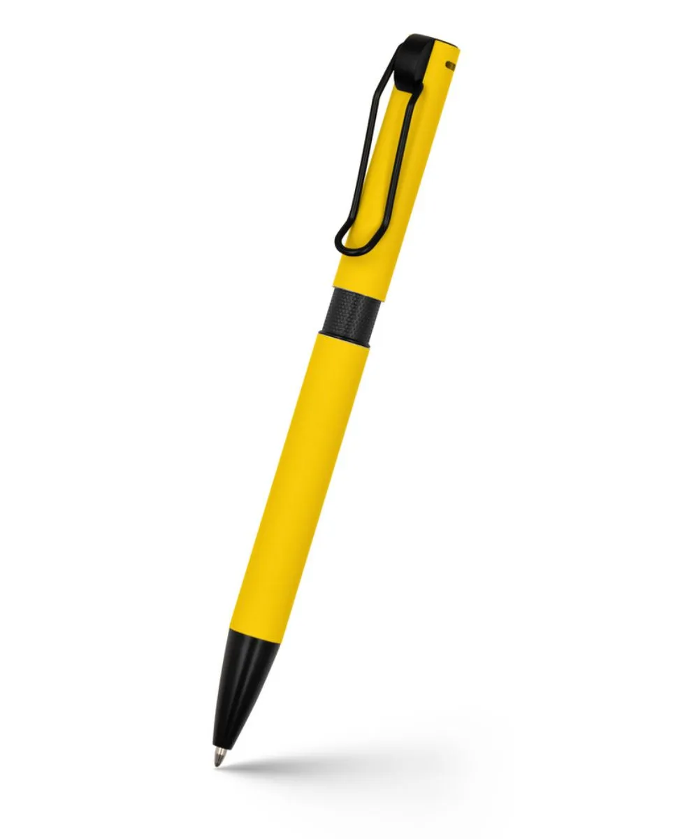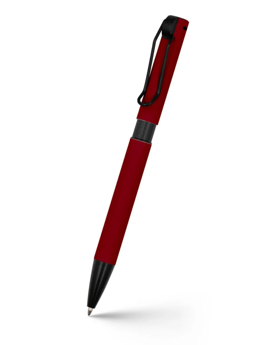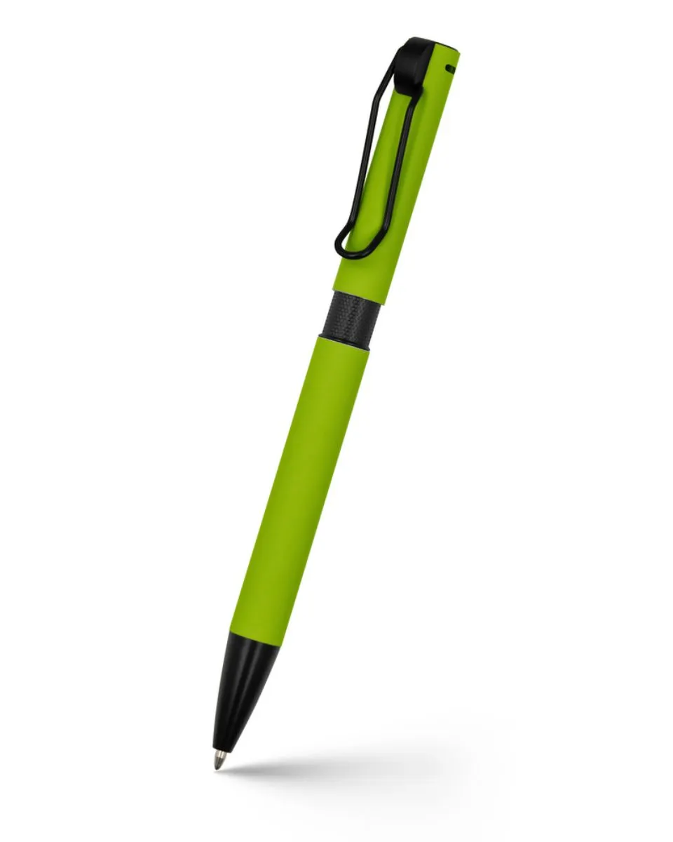 Pastapliiats värvilise kummise pealispinnaga korpusega, mustade detailidega ja aasakujulise klambriga.