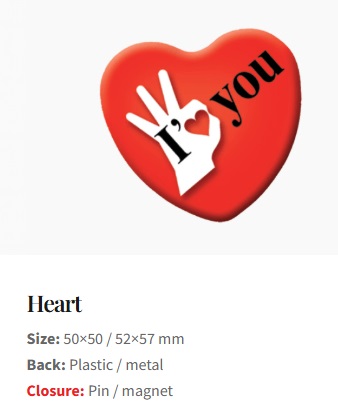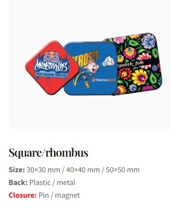 Pakume erikujulisi ja erineva kinnitusega (pin, haak, magnet) rinnamärke.