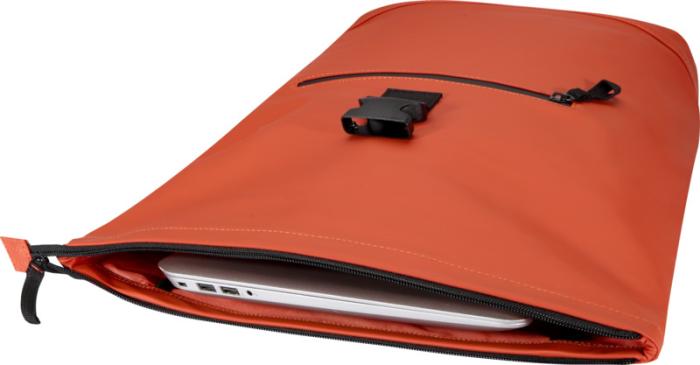 Kvaliteetsest taaskasutatud PU-nahast ja värvitoonilt sobiva RPET-voodriga rullkaanega seljakott ühendab endas moodsa stiili ja vastupidavuse. Veekindel viimistlus hoiab teile asjad kaitstud, samas kui rullkaanega sulgur pakub paindlikku hoiustamist. Sobib ideaalselt tööle ja koju sõitmiseks, reisimiseks või jõusaali minekuks. Sees on polsterdatud sahtel, mis mahutab kuni 15,6-tollised sülearvuti, ning täiendav lukuga tasku tehnika ja igapäevaste oluliste asjade korrastatuna hoidmiseks. Välisküljel pakub veekindla lukuga esitasku turvalist juurdepääsu, samas kui polsterdatud, reguleeritavad õlarihmad ja hingav tagapaneel tagavad mugavuse terveks päevaks. Saadaval kuues kaunis pastelses värvitoonis.