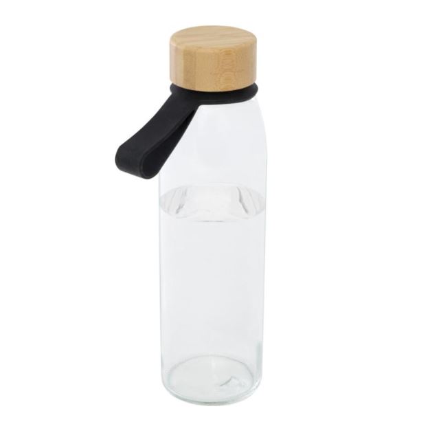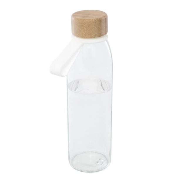 Ühekihiline klaasist veepudel keeratava bambuskaane ja mugava silikoonrihmaga, mis on valmistatud jätkusuutlikumatest ja sotsiaalselt vastutustundlikumatest allikatest. Toode on pakendatud ringlussevõetud kartongist kinkekarpi. Mahutavus: 500 ml. Klaas, bambus.