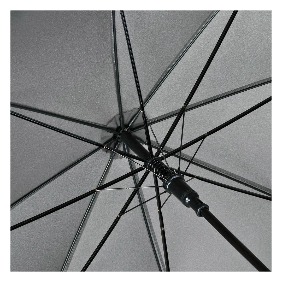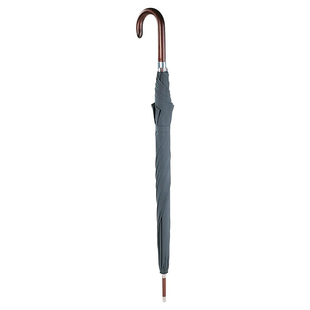 Vihmavari, millel on mugav avamissüsteem. Vihmavarju raam on tuulekindel. Vars ja käepide on tehtud tumepruunist puidust.
