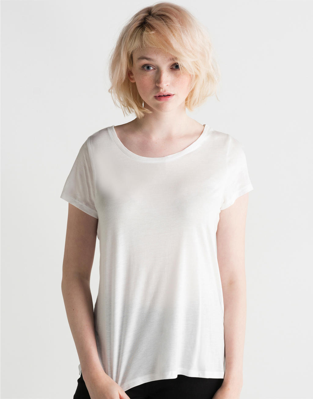Box fit T with gentle A line shape.