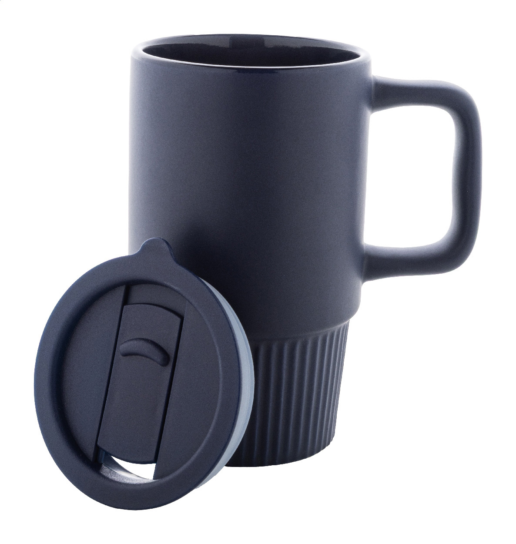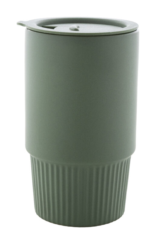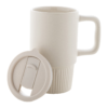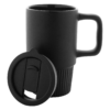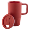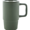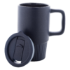 Mati viimistlusega kvaliteetne keraamiline reisikruus, millel kruusiga samas toonis PP-plastist joogikaas.
