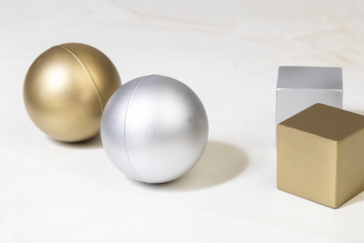 Luksusliku väljanägemisega PU-vahtust stressipall metallikviimistlusega. Kuldne ja hõbedane värvitoon.